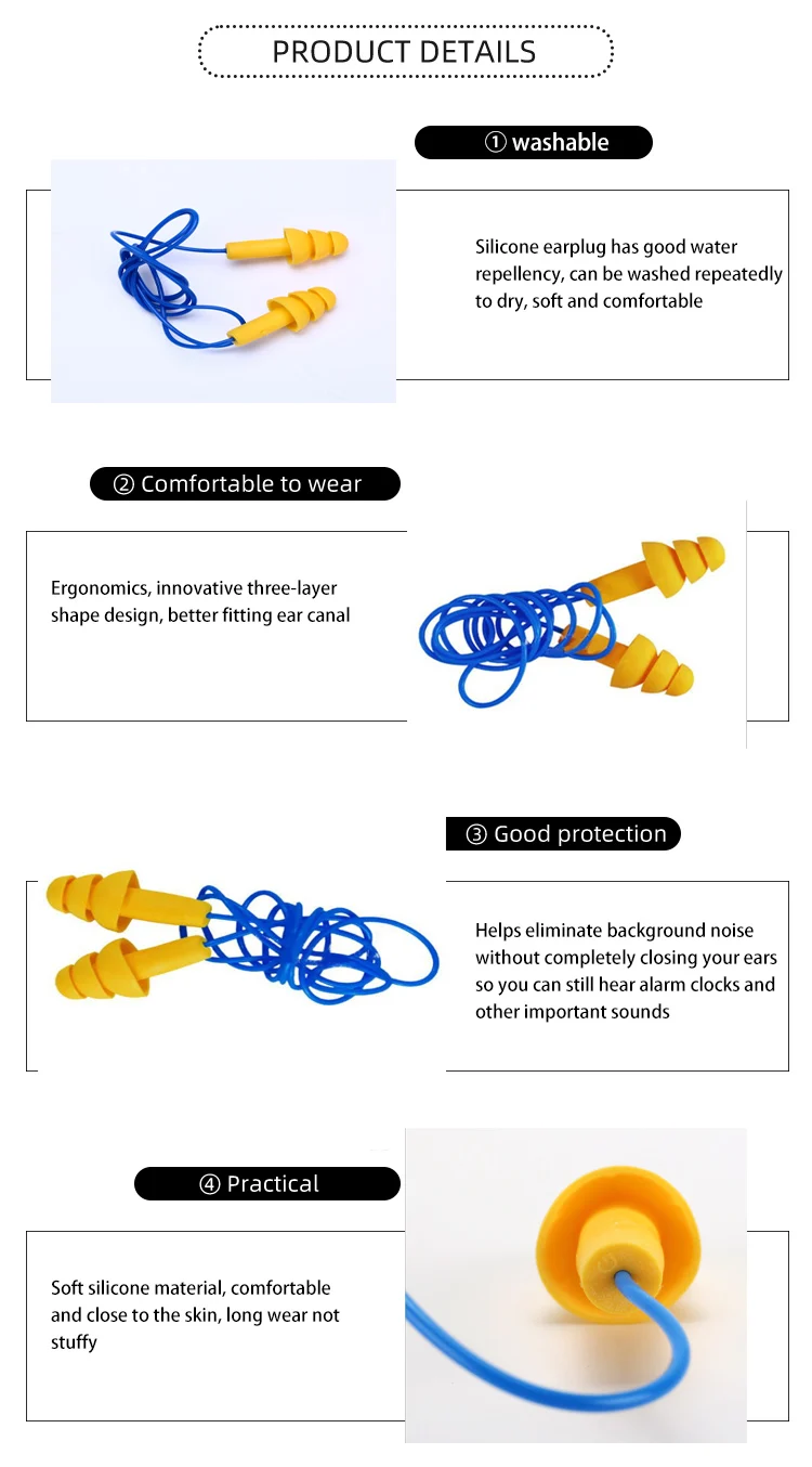 S652 – Bouchons d’oreille en silicone avec cordon en silicone pour la réduction du bruit, imperméable et écologique, en forme d’arbre de Noël, vente en gros, Bouchons d’oreille avec ficelle en tissu